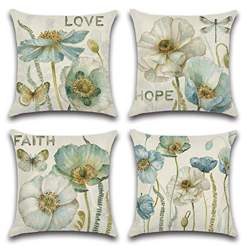 Kissenbezug mit Bauernhaus-Blume, Samt, moderner Jacquard-Kissenbezug für Sofa, Couch, Schlafzimmer, Wohnzimmer, Heimdekoration