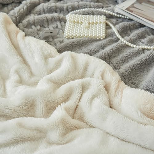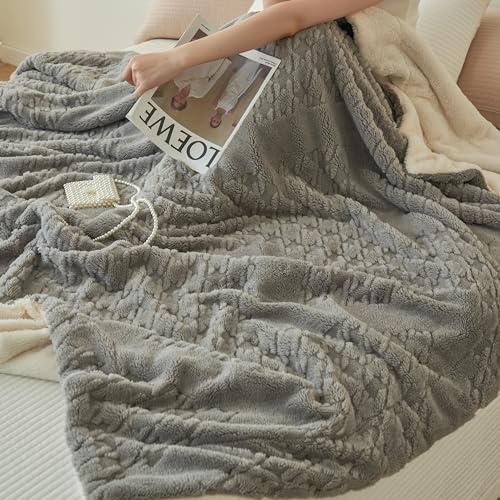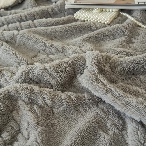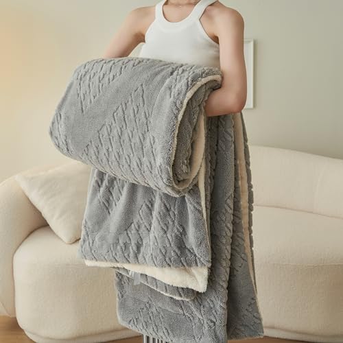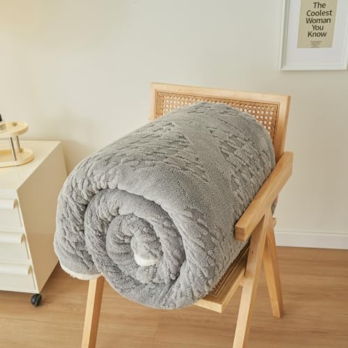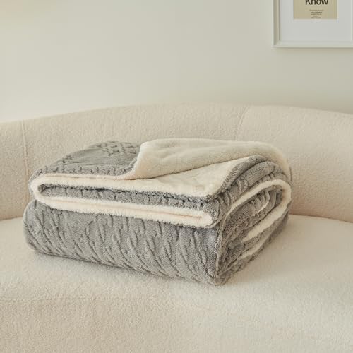 Tospass Decke Grau 150x200cm Flauschig Kuscheldecke Tagesdecke Warme Sherpa Decke Grobstrick Decke Weich Warme Sofadecke Wohndecke Doppelgesicht Decke