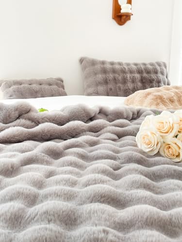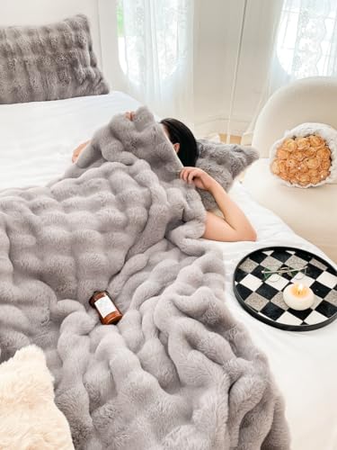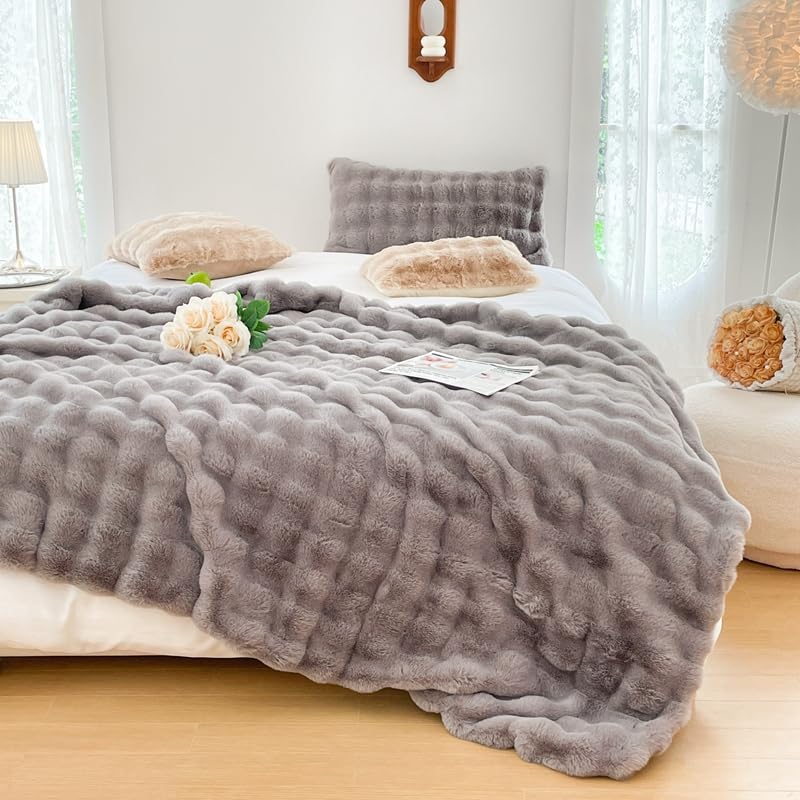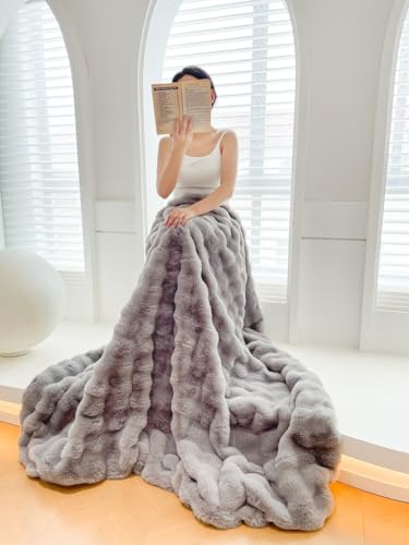 Doppelseitige Kuscheldecke: Die Vorderseite der Decke ist 800g Kaninchen Plüsch und die Abseite der Decke ist Hohes Gewicht Babyvlies, der Flor ist adipös und weich, sehr warm auf der Haut, diese Winterkuscheldecke kann auf beiden Seiten verwendet werden, einfach, stilvoll und elegant.