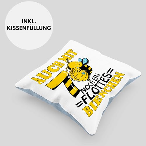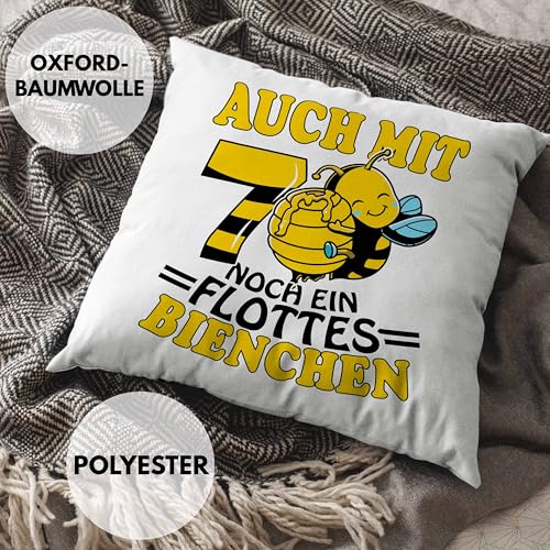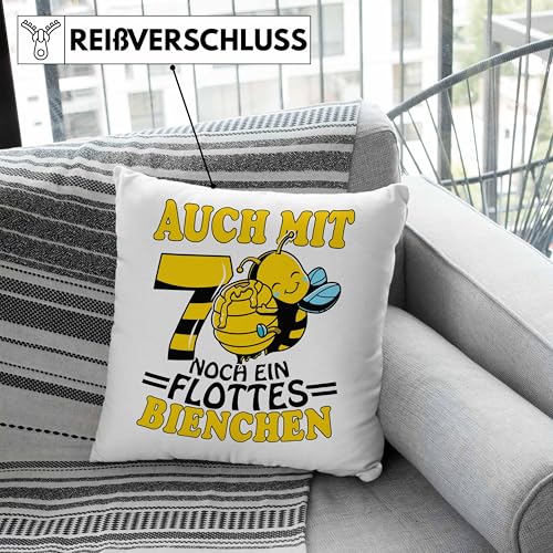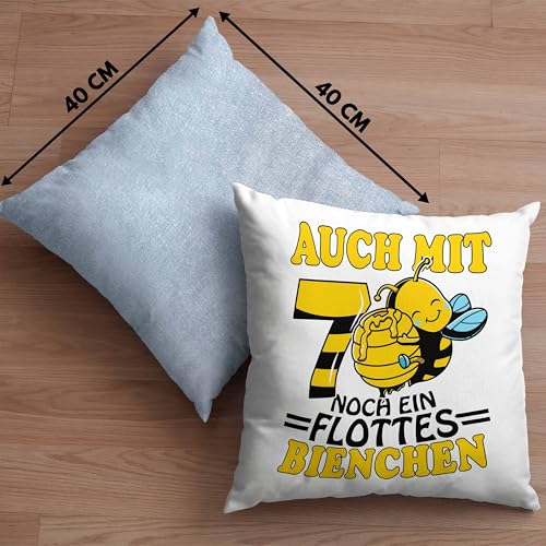 Trendation 70. Geburtstag Kissen mit Füllung 40×40 Geschenk Frauen Oma Großmutter Geschenkidee 70Er Bienen Auch Mit 70 Noch EIN Flottes Bienchen (Blau)