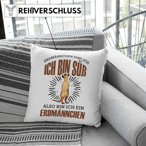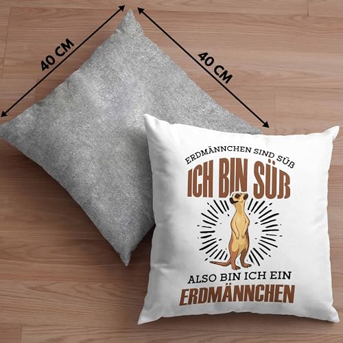 Trendation Erdmännchen Sind Süß Kissen mit Füllung 40×40 Geschenk für Tierwohlhaber (Grau)