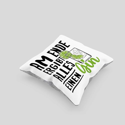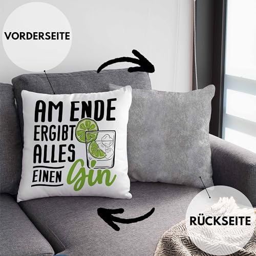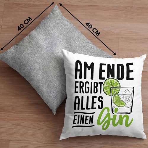 Lustige Deko-Kissen mit Füllung für Gin Liebhaber als Geschenk zum Geburtstag oder Weihnachten. Lustiger Gin Liebhaber Spruch.Tolles Gin Liebhaber Geschenk zum Geburtstag oder Weihnachten als lustige Geschenkidee mit witzigem Spruch für Gin Liebhaber