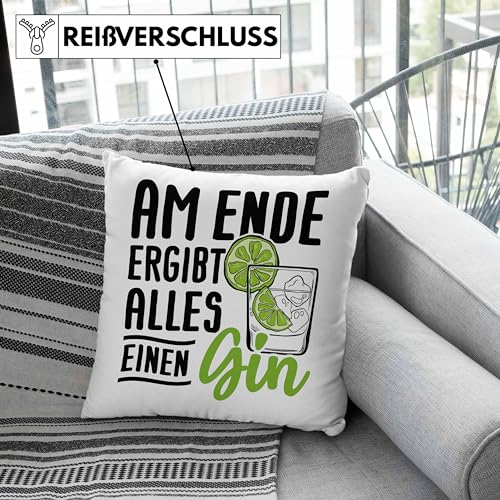 Trendation Gin Cocktail Kissen mit Füllung 40×40 Geschenk Spirituosen Motiv Witz Am Ende Ergibt Alles Einen Gin (Grau)