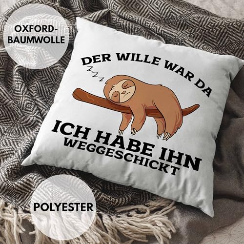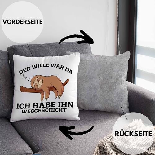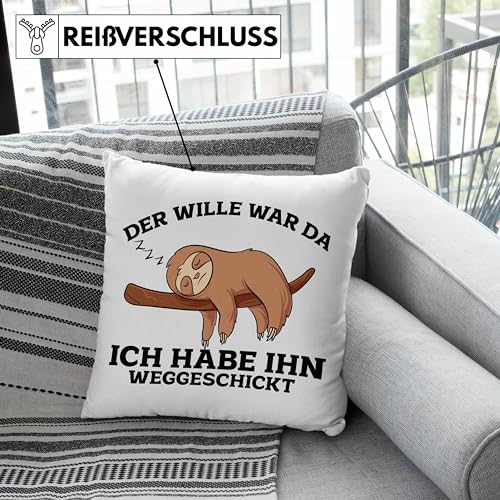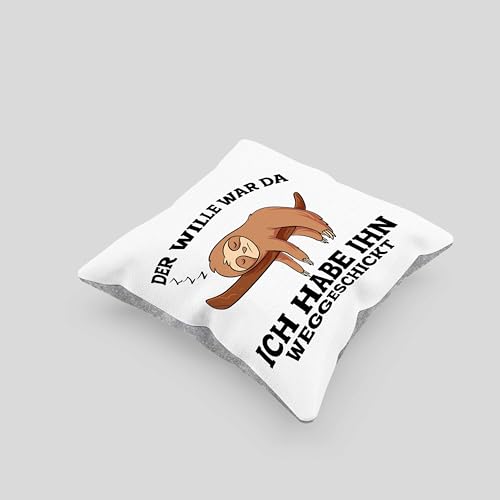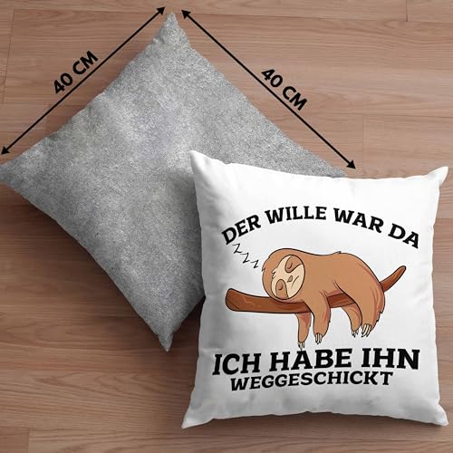 Trendation Lustige Kissen mit Füllung 40×40 mit Faultier Der Will War Da Spruch (Grau)