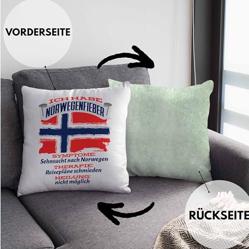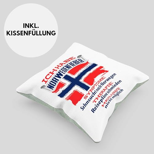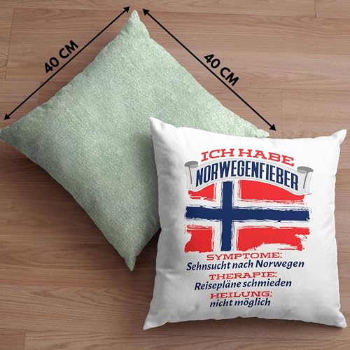Trendation Norwegen Kissen mit Füllung 40×40 Geschenk Grafik Norwegenfieber Geschenkidee Spruch Lustig (Grün)