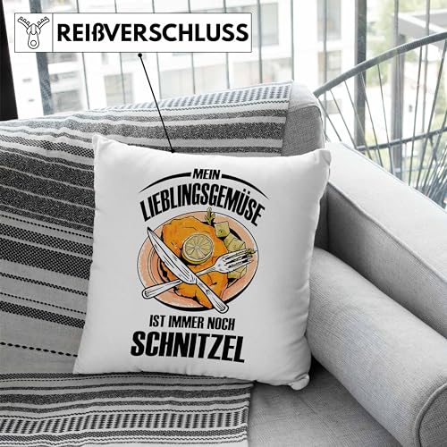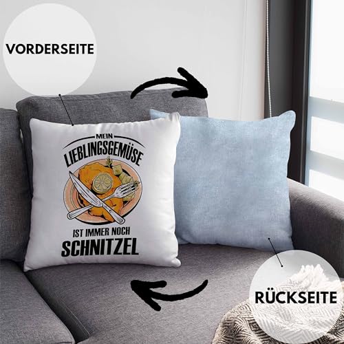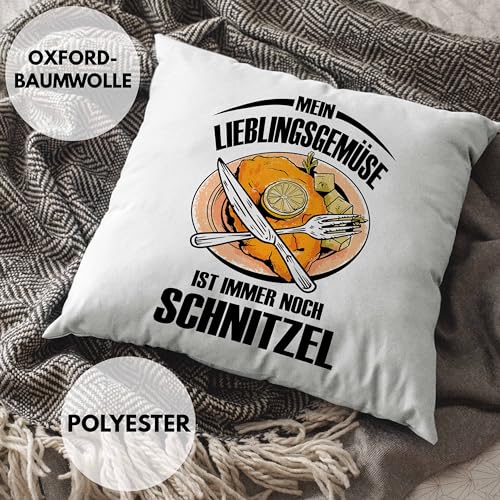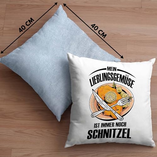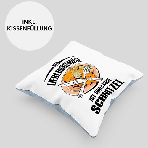 Trendation Schnitzel-Kissen mit Füllung 40×40 Geschenk für Schnitzel-Liebhaber Mein Lieblingsgemüse Ist Immer Noch Schnitzel (Blau)