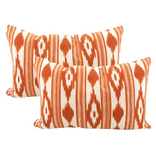 TRESMESTRES Sofa Kissenbezüge – Mediterranes Design, Lebendige Farben, Ikat-Muster – Deko Kissenbezüge Boho, Lässig und Modern – Kissenbezüge 30×50 cm – Orange, 2er Set