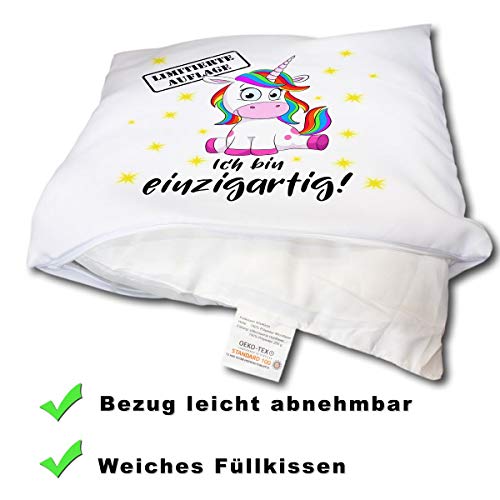 🦄 MAGISCHE GESCHENKIDEE – Das lustige Unicorn Spruchkissen lässt Mädchen und Frauen Herzen höher schlagen und bringt Kinder und Erwachsene zum Schmunzeln. Magical Einhörner Kuschelkissen Geschenk zum Geburtstag für die beste Freundin, Frau, Mutter, Tochter, Schwester, Nichte, Cousine oder die Kollegin.