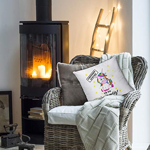 🦄 FÜR EINHORNFANS – Du kannst das Einhornkissen für dein Sofa, Bett oder als Geschenkkissen für kleine und große Einhorn Liebhaber, Mama, Oma, Geschwister, Damen und Jungs nehmen. Ob Geburtstagsgeschenk oder zu Weihnachten als Weihnachtsgeschenk. Das witzige Sprüchekissen zaubert ein Lächeln ins Gesicht.