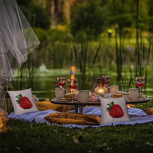 🍓 HOHE QUALITÄT – Das quadratische Couchkissen besteht aus abnehmbarer Zierkissenhülle mit Motiv und Füllkissen. Durch die hochwertige feste Stoffqualität aus dichtem baumwollartigen Strukturgewebe ist der Kissenbezug strapazierfähig und pflegeleicht. Das große farbenfrohe Erdbeer Früchte Design auf der Dekokissenhülle leuchtet nach mehrmaligem Ausspülen wie am ersten Tag.
