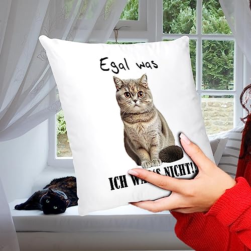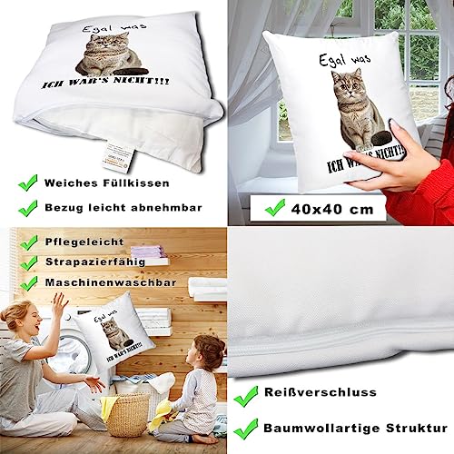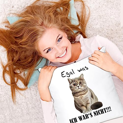 TRIOSK Kissen mit Katze Katzenmotiv Egal was Spruch lustig Ich Wars Nicht Geschenk für Katzenliebhaber Frauen Freundin Dekokissen 40×40