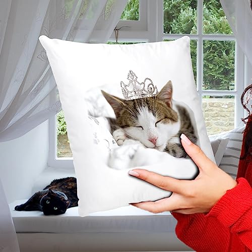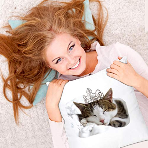 TRIOSK Kissen mit Katze Katzenmotiv Prinzessin Schlaf lustig Katzen Geschenk für Katzenliebhaber Frauen Freundin Mädchen Dekokissen 40×40