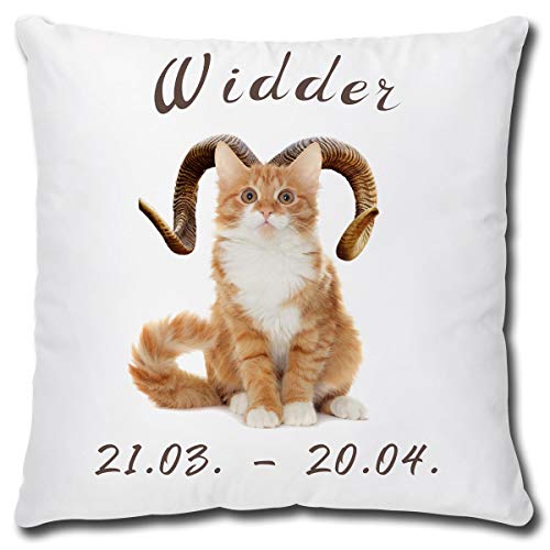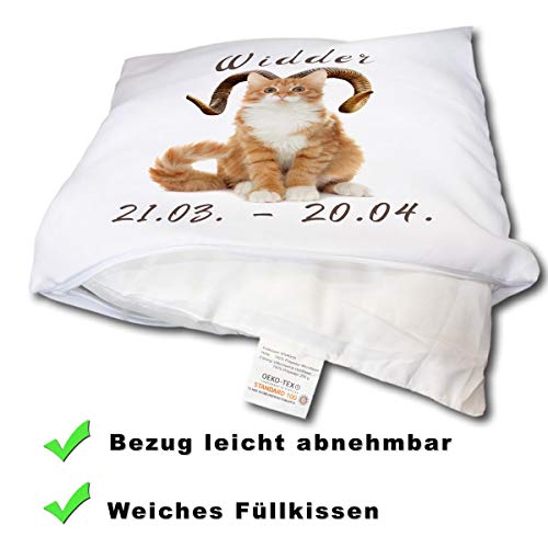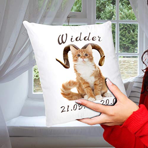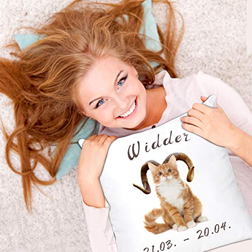 ⭐ GESCHENKIDEE mit Kuschelfaktor – Das lustige Sternzeichenkissen mit Katzenmotiv lässt Widder Geborene Katzenliebhaber Herzen höher schlagen und bringt Katzenbesitzer, Erwachsene und Kinder zum Schmunzeln. Super Geschenk zum Geburtstag für die beste Freundin, Frau, Partnerin, Mutter, Tochter, Ehefrau, Schwester oder als Geburtstagskissen für die Kollegin.