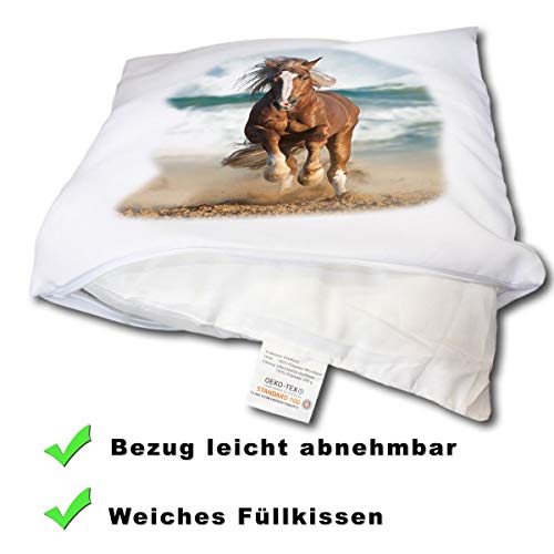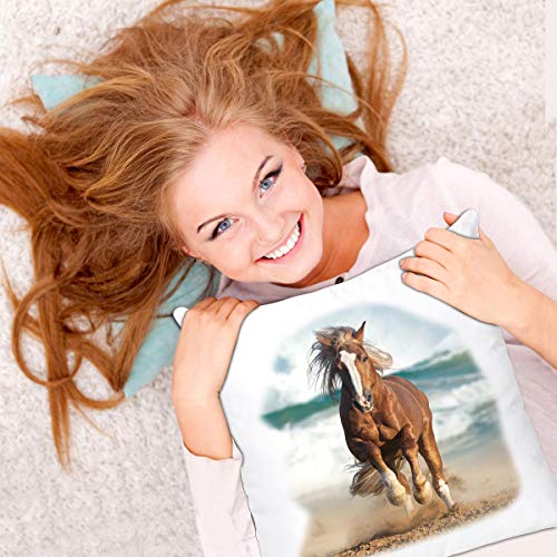 Für alle Pferdefreunde – Neben Ihren liebsten Damen können Sie das Pferde Kissen auch als Geschenkidee für alle Pferdeliebhaber, Mädchen, Jungs, Frauen, Männer, Kinder und Geschwister nehmen sowie der Oma und dem Opa schenken. Das Kuschelkissen mit dem Pferdemotiv „Pferd am Meer!“ passt zu einigen Situationen.
