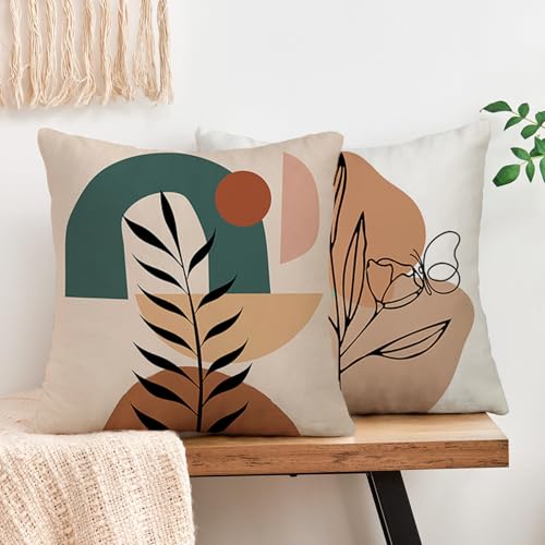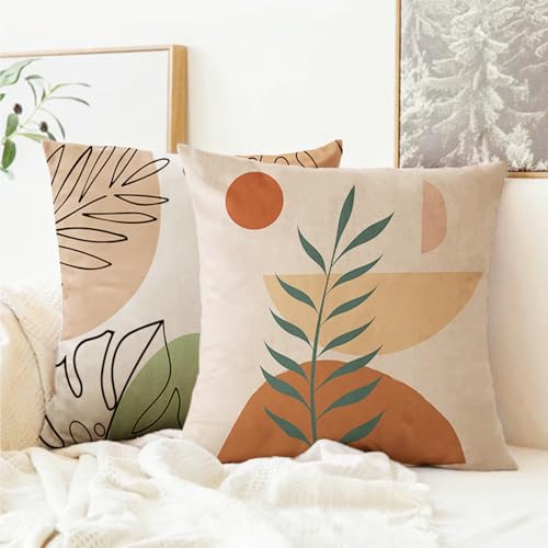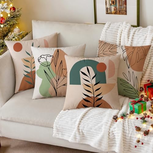 Trlyane Kissenbezug 4er Set 45×45 cm Dekokissen Leinen Kissenbezug Abstraktes Blattmuster Wohnzimmer Dekokissen