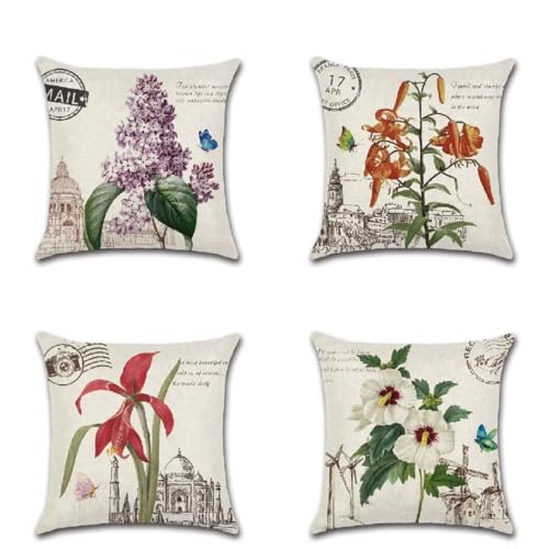 Tropische Pflanzen Kissenbezug 80 x 80 cm Sofakissen Super Weich Kopfkissen 4er Set Sommer Kissen Deko Kissenhülle mit Reißverschluss Kopfkissenbezug Quadrat Kissen für Schlafzimmer Wohnzimmer R814