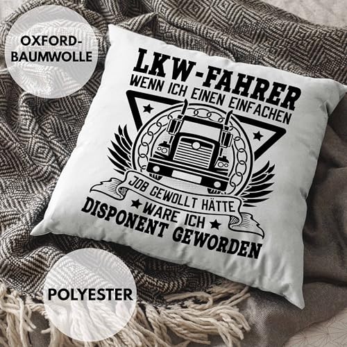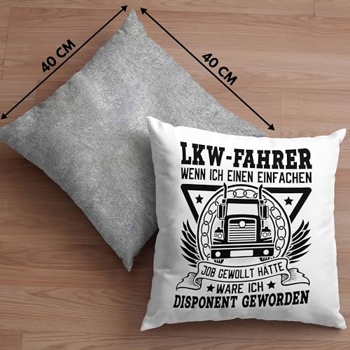 Trucker Kissen mit Füllung 40×40 Geschenk Für Berufskraftfahrer LKW Fahrer Wenn Ich Einen Einfachen Job Gewollt Hätte Disponent Fernfahrer Berufskraftfahrer (Grau)