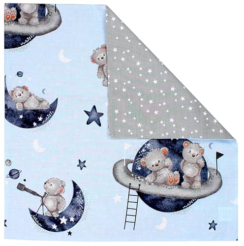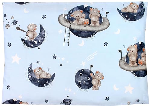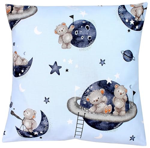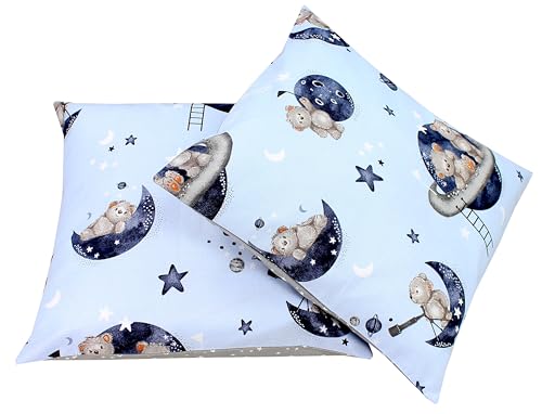 TupTam Kinder Kissenbezug Dekorativ Gemustert mit Hotelverschluss 2er Set, Farbe: Bären im Kosmos/Weiße Sterne/Grau, Größe: 40 x 60 cm