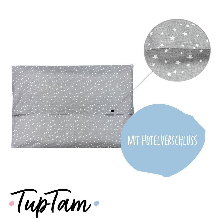 Kinder-Kissenbezug mit komfortablem Umschlagverschluss. Der absichtliche Verzicht auf Reißverschluss oder Knöpf macht das Schlafen auf den TupTam Kissenbezügen noch angenehmer.