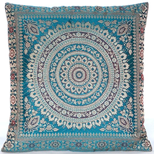 Turquoise / Türkis Indische Seide Deko Kissenbezüge 40 cm x 40 cm, Extravaganten Deko Kissenbezüge für Wohnzimmer und Schlafzimmer Dekoration, Kissenhülle aus Indien. Angebot gültig solange der Vorrat reicht