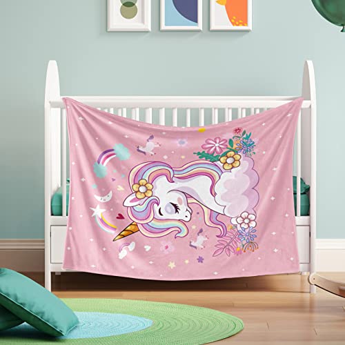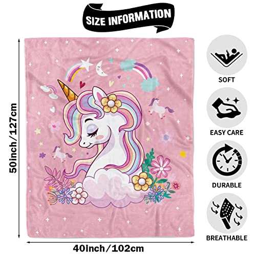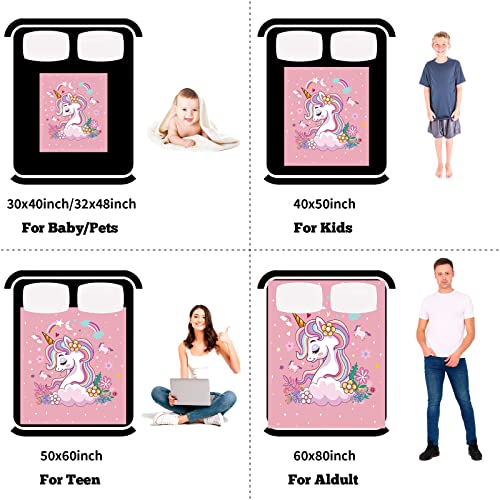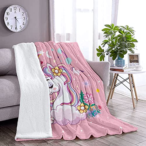 🦄Einzigartiges Design: Eine Seite der niedlichen Einhorndecke für Kinder ist mit schönen Blumen und niedlichem Einhornmuster bedruckt, und die andere Seite ist eine weiße Plüsch-Fleecedecke, die bequem und warm ist. Für jeder Jahreszeiten im Rahmen. Es ist perfekt für Kinder-/Jugendzimmer/Gästezimmer.