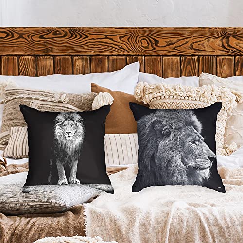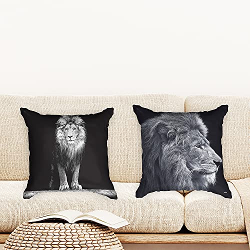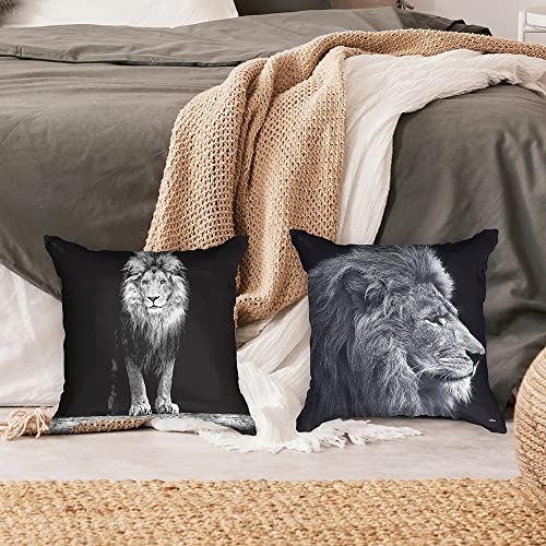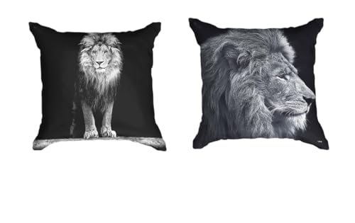 Ulticool – Kissenhülle – Löwe Löwenkopf – Set von 2 Motiven – 45 x 45 cm – Dekokissen ohne Füllung – Kissenbezug Zubehör statt Sofa / Bett – Schwarz Weiß