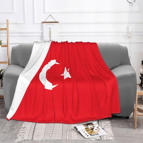 Ultraflauschige Fleece-Decke mit türkischen Flaggenmustern, bequem, leicht und warm für Bett, Sofa und Reisen