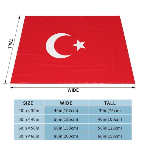 Mehrere Größenoptionen: Erhältlich in vier Universalgrößen (101,6 x 76,2 cm, 127 x 101,6 cm, 152,4 x 127 cm, 203 x 152,4 cm) Diese weiche türkische Flaggendecke eignet sich für unterschiedliche Bedürfnisse, egal ob Sie eine kleine Sofadecke oder eine große Bettdecke benötigen.