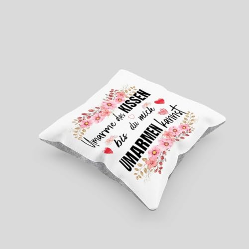 Umarme Das Kissen mit Füllung 40×40 Geschenk Freundin Fernbeziehung Geschenkidee Freund Liebe Valentinstag (Grau)