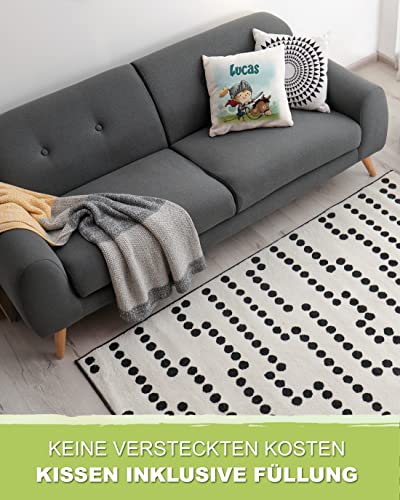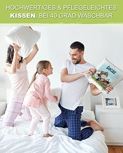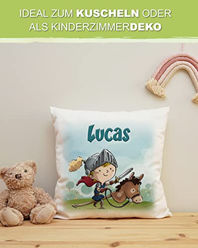 Unikatolo Kissen mit Name und Wunschmotiv personalisiert. Motiv kleiner Ritter Junge, Größe ca. 40 x 40 cm inkl. Kissenfüllung Tolle Geschenkidee für Kinder zum Geburtstag, Schulanfang, Ostern, Weihnachten, Abstammung… Tolle Deko im Kinderzimmer, ideal zum kuscheln für zu Hause oder unterwegs in den Urlaub