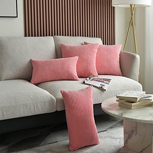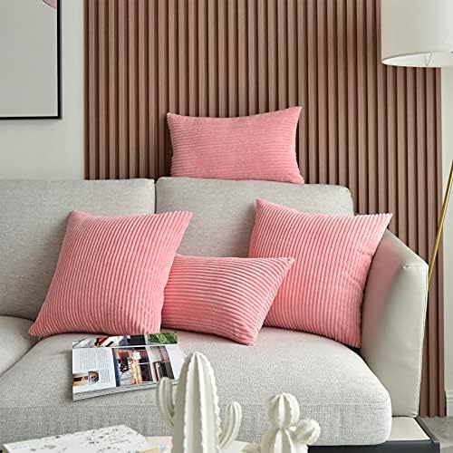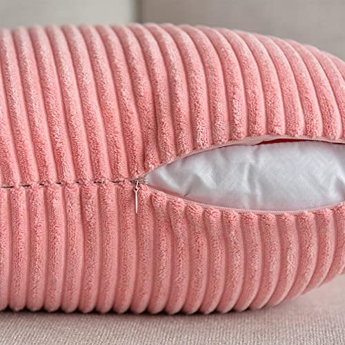 UPOPO 2er Set Kord Kissenbezug Dekorative Einfarbig Kissen Cord-Kissen Kissenhülle Kissenbezüge Dekokissen Zierkissen Sofakissen für Sofa Schlafzimmer Wohnzimmer mit Reißverschlüsse 55 X 55cm Rosa