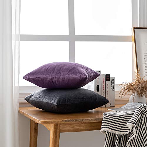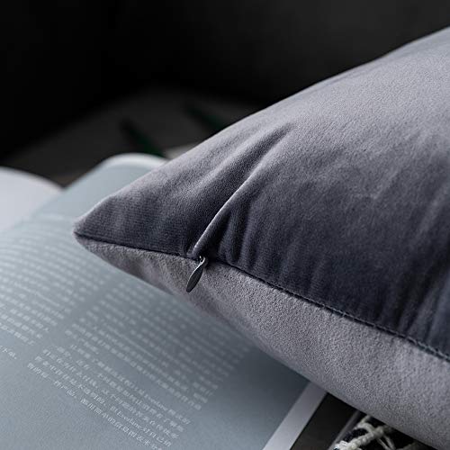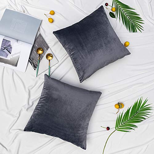 UPOPO 2er Set Samt Kissenbezug Dekorative Einfarbig Kissen Weich Kissenhülle Kissenbezüge Dekokissen Zierkissen Sofakissen für Sofa Couch Schlafzimmer Wohnzimmer mit Reißverschlüsse 40 X 40cm Grau