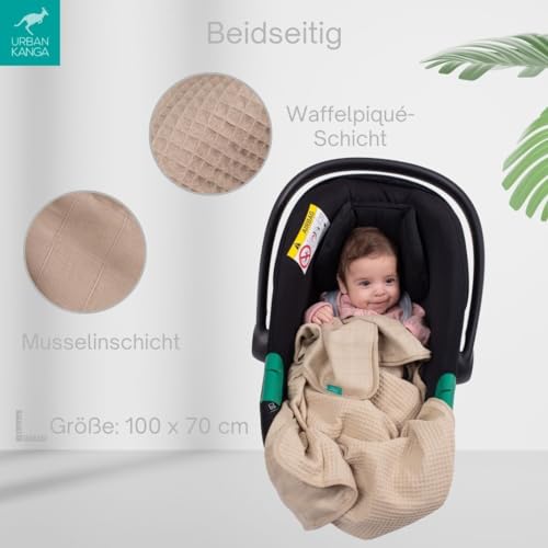 Urban Kanga Babydecke 2 Lagige Kuscheldecke Wickeltuch aus 100% Baumwolle 100 X 70 cm (Humus)