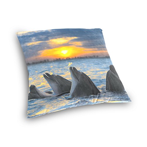 Use7 Kissenbezug, dekorativer Kissenbezug, quadratisch, Motiv: Delfin, Sonnenuntergang, Sofa, Bett, Doppelseitiges Design, Textil, Mehrfarbig, 40 x 40cm/16 x 16 Inches