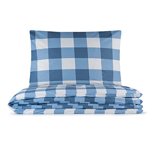 VelvetHome Kissenbezug 40 x 40 cm, Made in EU, 100 % Baumwolle, Dekoration, 40 x 40 cm, statt Sofa, Stuhl, Wohnzimmer, mit verdecktem Reißverschluss, kariert, blau