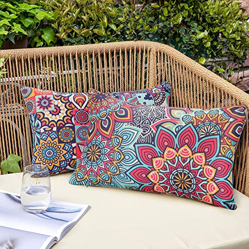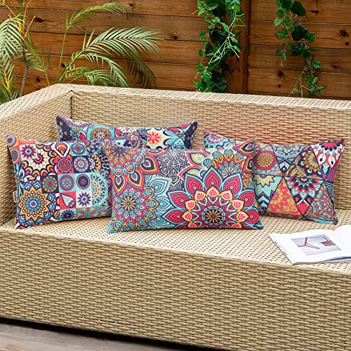 Vintage Ethnic Design: Wir kreieren luxuriöse und auffällige Heimprodukte und diese Outdoor-Kissenbezüge mit mehrfarbigem Boho-Mandala-Muster sind ein einzigartiges originelles Design mit stilvollem und modernem Muster auf wasserfestem Leinenhintergrund. Bringen Sie neuzeitlich die richtigen Kissenbezüge direkt zu Ihrer Tür.