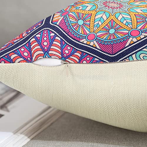 Stellen Sie sich diese mehrfarbigen Mandala-Design-Kissen auf Ihrem Sofa/Stuhl vor, um Ihre Familie und Freunde willkommen zu heißen. Sieht toll aus und sieht toll auf Ihrem Sofa aus. Eine ausgezeichnete Synchronisation für Ihr Solarium oder Ihren Wohnraum im Freien mit diesen wasserdichten Mandala-Kissenbezügen aus Baumwolle und Leinen für den Außenbereich.