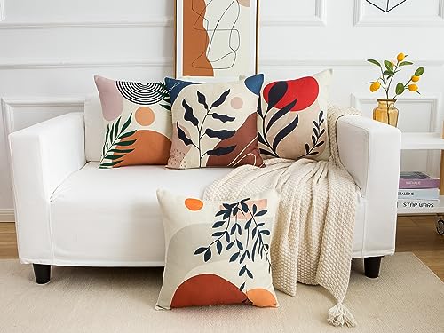 Abstraktes Musterdesign: Dieser Morandi-Kissenbezug übernimmt ein abstraktes, einfaches und geometrisches Designkonzept, tropisches Pflanzenblattmuster mit modernem geometrischem Delle, nicht Andererseits eine einfache Dekoration, der abstrakte Windkissenbezug verleiht Ihrem Zuhause auch eine einzigartige künstlerische Note.