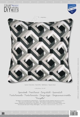 VERVACO Stickpackung Kissen Langstich Weiss-SCHWARZ Stickerei Anfänger Basteln Erwachsene Kreativ Set ca. 40 x 40 cm Bastelset Handwerker Handarbeit Zubehör Geschenkset Spannstichkissen, Multicolor