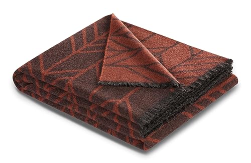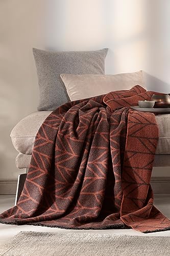 Villeroy & Boch® weiches Fransenplaid Nexus Ember I dunkelrotes Plaid in 140×170 cm I Wohndecke mit kurzen Fransen aus 100% Wolle I Sofa-Decke mit grafischem Muster I GRS zertifizierte Fransendecke