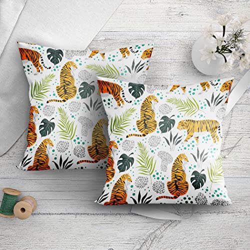 Violetpos Kissenbezug Kissenhülle 40×40 cm 2er Set Home Decor Dekokissen Fall Sofa Werfen Kissenbezüge Pillowcases Cartoon Tiger Blätter