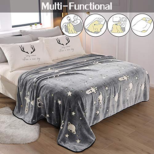 VIVILINEN Kuscheldecke Weiche Glow in The Dark Decke Galaxy Sterne Pattern Leuchtende Decke Flanelldecke Sofadecke für…