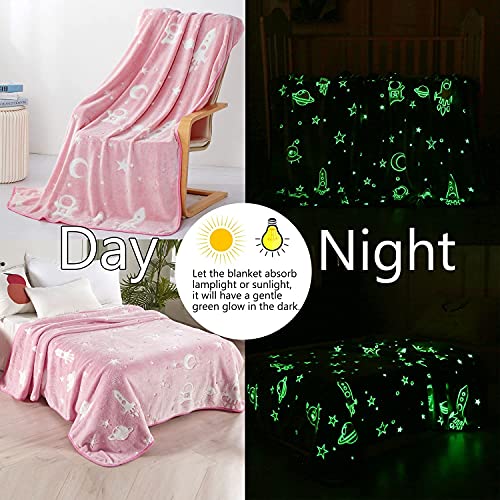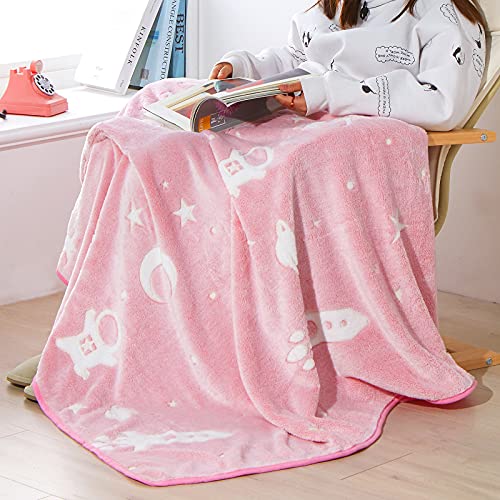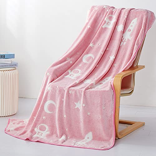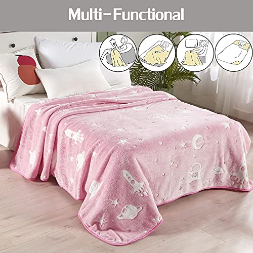 VIVILINEN Kuscheldecke Weiche Glow in The Dark Decke Galaxy Sterne Pattern Leuchtende Decke Flanelldecke Sofadecke für Mädchen Jungen Kinder Erwachsene (Rosa-152x203cm)