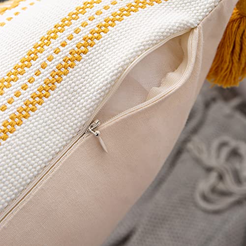 【Boho Design】Dekorative Kissenbezug hat ein einzigartiges und einfaches Außendesign. Die gewebte Diamantform, die einfachste Textur mit einer verspielten Quaste, sind elegant und modisch.