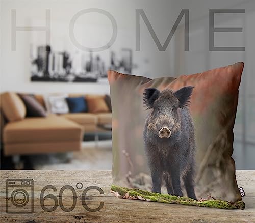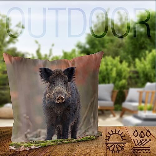 VOID Eber Wildschwein Jagd Tier Wald Kissenbezug Kissenhülle Polyester wasserfest Outdoor Indoor, Kissen Größe:40 x 40 cm