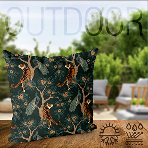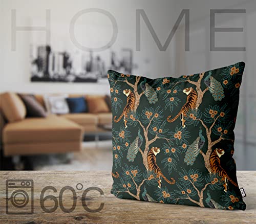 VOID Pfau und Tiger Kissenbezug Kissenhülle Sofakissen Kissen Deko Outdoor-Kissen Dekokissen, Kissen Größe:50 x 50 cm