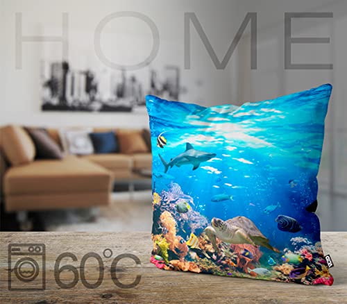 VOID Riff Meerestiere Fische Taucher Kissenbezug Kissenhülle Sofakissen Kissen Deko Outdoor-Kissen Dekokissen, Kissen Größe:40 x 40 cm