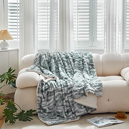 Wajade Kunstfelldecke – Sherpa Schafdecke – Comfort Luxuriöse Flauschige Kuscheldecke – weiche Decke für Couch und Bett 130 x 160 cm – Marmor Blaugrau