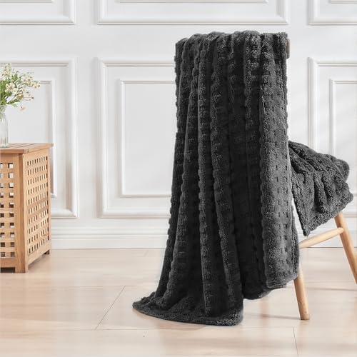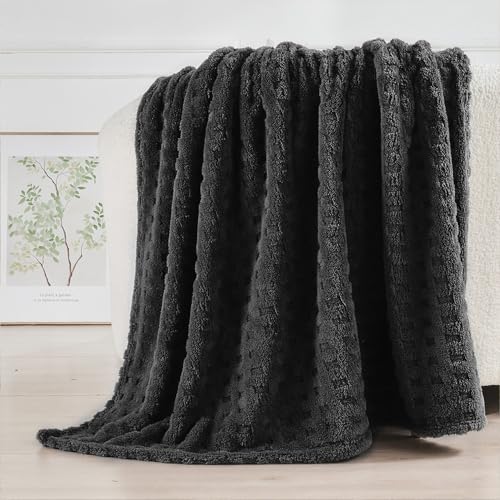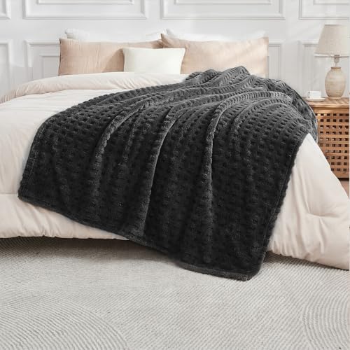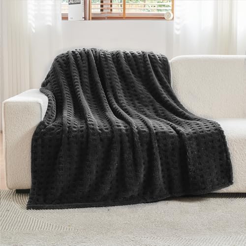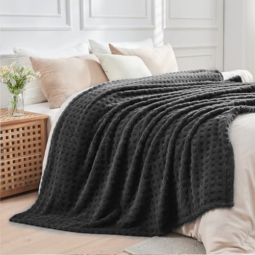 Wajade Kuscheldecke Flauschig Kunstfelldecke Decke Sofa Waffel Sofaüberwurf warm Sofadecke Comfort Couchdecke weiche Wohndecke für Couch und Bett 127 x 178 cm Black