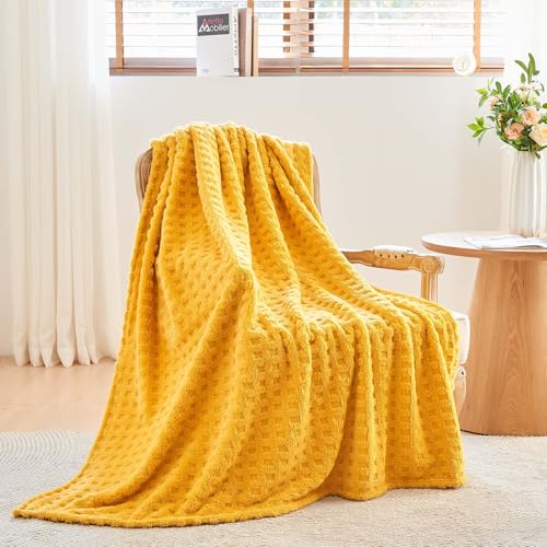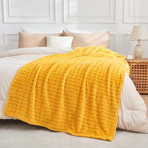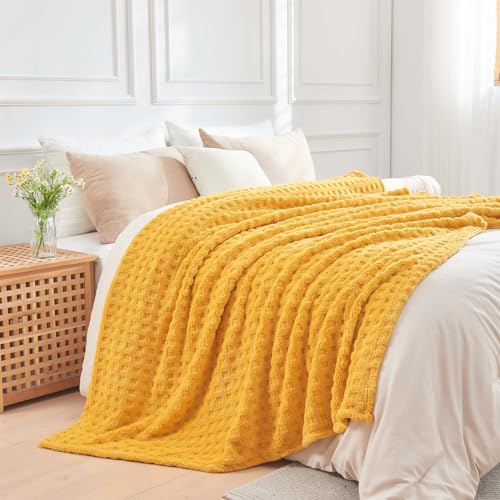Wajade Kuscheldecke Flauschig Kunstfelldecke Decke Sofa Waffel Sofaüberwurf warm Sofadecke Comfort Couchdecke weiche Wohndecke für Couch und Bett 178 x 203 cm Yellow